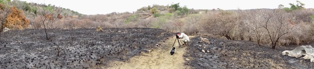 Tropiikin puut ovat mukavan isoja. Keskivertopuun rungolla on leveyttä puolisen metriä ja oksillakin pystyy seisomaan ilman tukea jos tasapaino on kohtuullinen. Jalustan pystyi asettamaan oksistoon. Kalusto oli valmiina, kun lauman kärkisikojen selkiä alkoi vilahdella kasvillisuuden seassa.