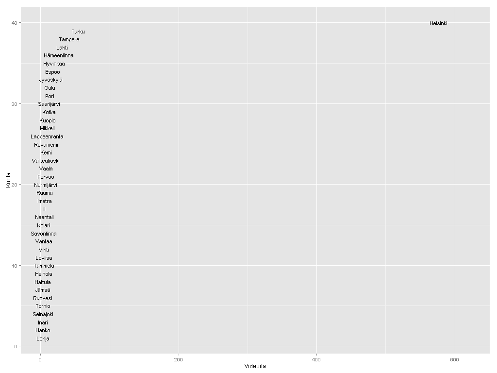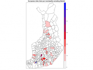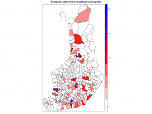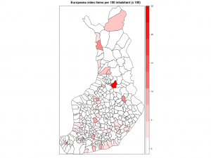 In the previous post, I told how I learned to stop being afraid of Europeana and love SPARQL. As a proof, I gathered statistics on how many video resources there are from different Finnish municipalities. Proportionally, taking into account of the number of inhabitants, the #1 video corner in Finland is Saarijärvi. My Finnish readers, please note the EDIT section towards the end of that posting. For some strange reason I first claimed it to be Helsinki. Sorry about that, Saarijärvi.