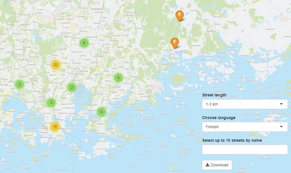 The tiny, blue spot on the map denotes my skiing routes in Saariselkä. You have to zoom all the way in to see them properly.